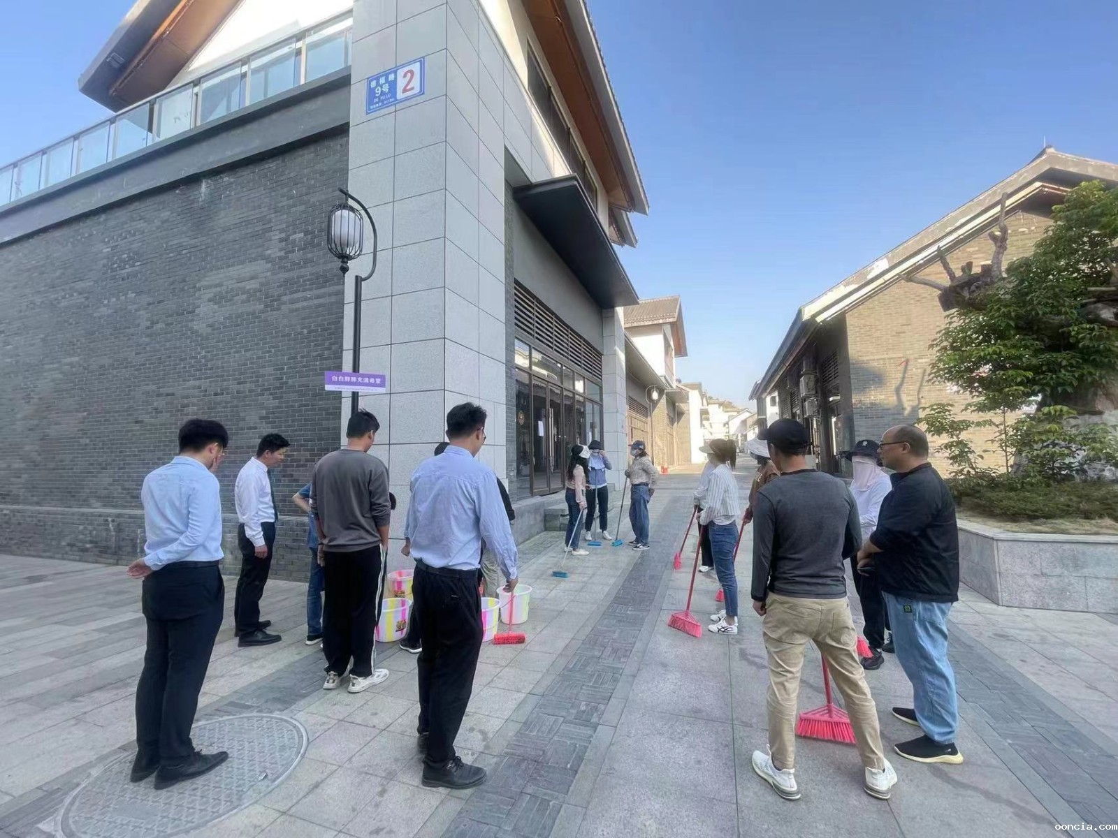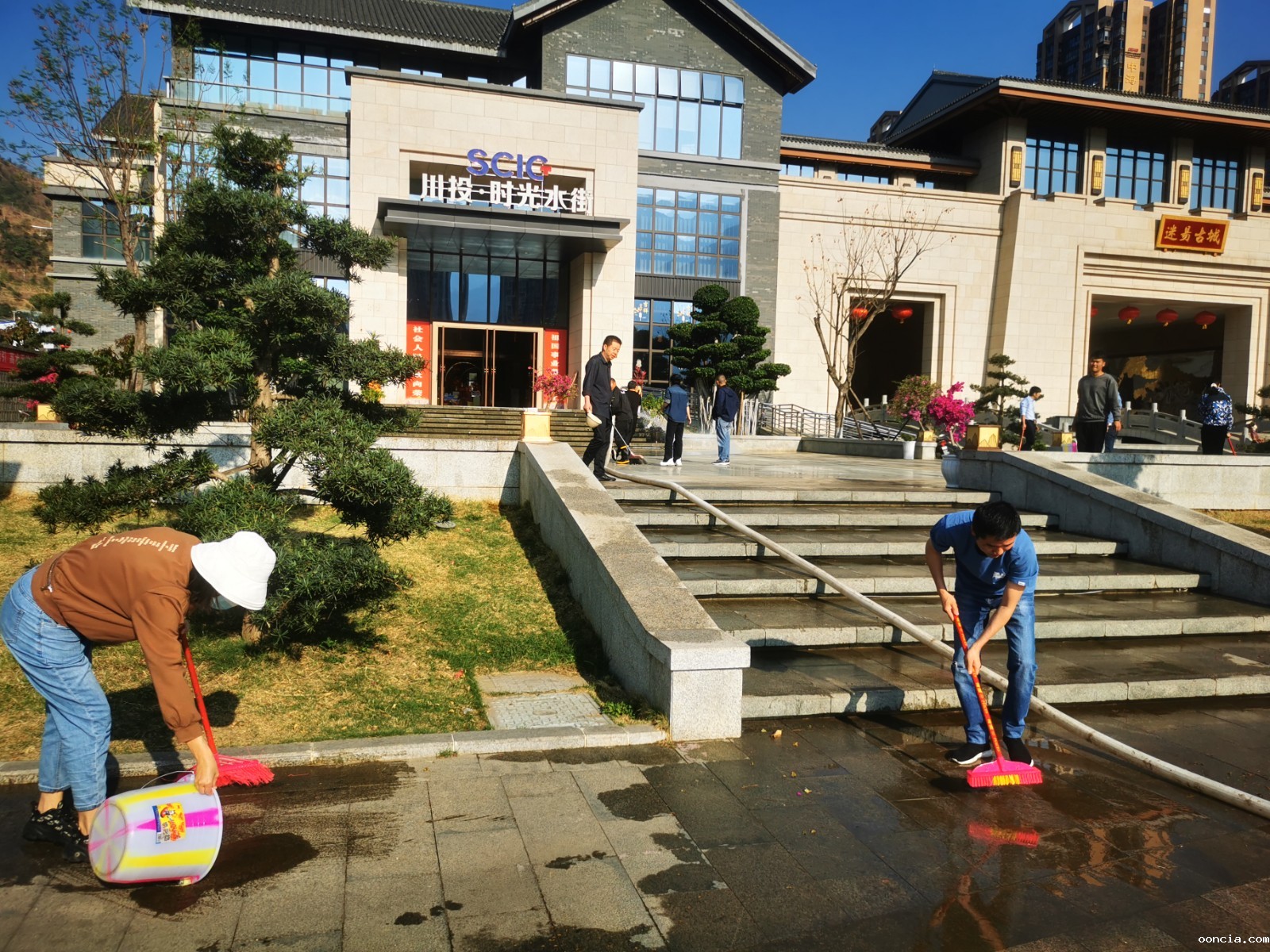 3月31日,ooncia幸福共公司组织全体员工对时光水街的门楼广场、商业街区进行了深度清洁。