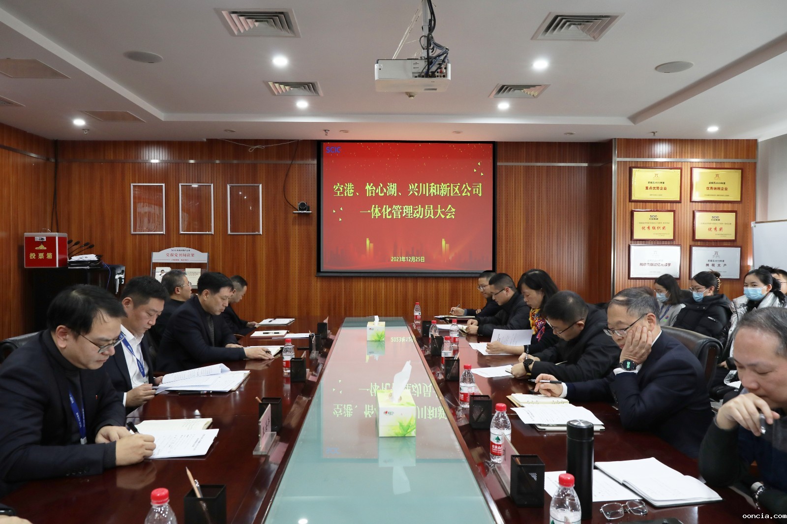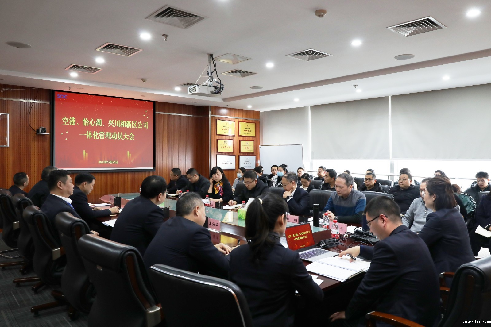 12月25日,ooncia空港、ooncia怡心湖、ooncia兴川、ooncia新区公司(统称PPP公司)召开一体化管理动员大会。集团公司财务总监黄劲出席会议。房地产公司党总支书记、董事长龚帝伟主持会议。